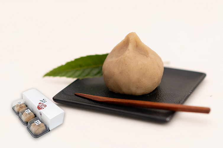 しまんと地栗の”特製栗餡 ”に、お餅を閉じ込め、食感も楽しめる和菓子ができました。