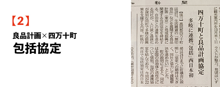 高知県高岡郡四万十町は、生活雑貨の「無印良品」等を展開する良品計画と地域復興に関連する包括協定を結びました。