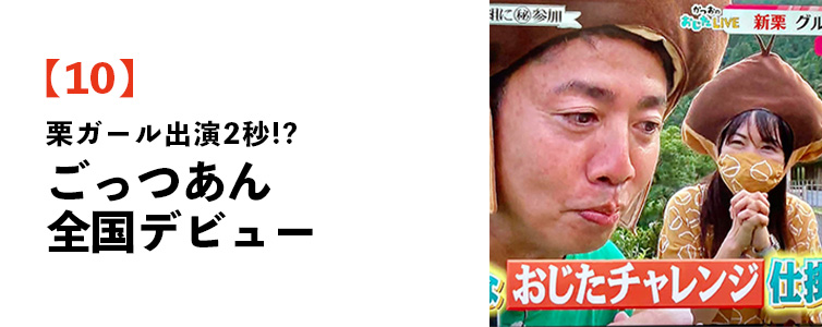栗の被り物に栗柄のマスクとシャツ。なかなかのインパクトに一瞬でも気になった方がいたことを願います。(笑)土佐かつおさん、ごっつあんです!